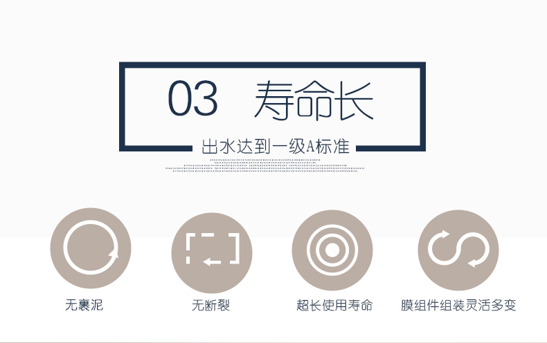 3、平板膜使用壽命長達5年以上,無裹泥、無斷裂、膜組件組裝靈活多變