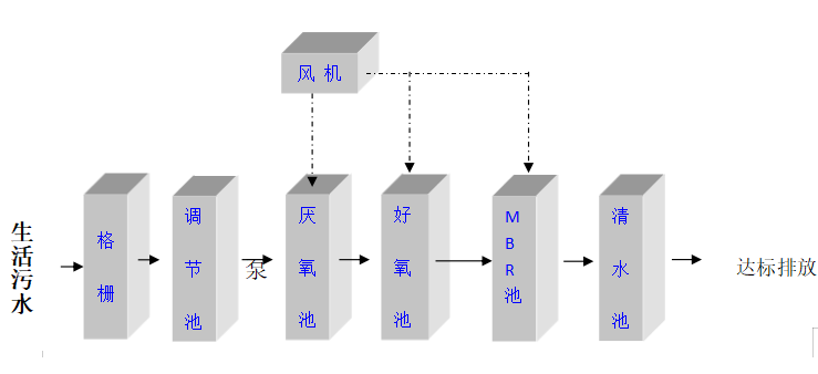 MBR工藝介紹針對多個污水處理設(shè)施建設(shè)和運(yùn)營狀況的實(shí)際調(diào)研,并且經(jīng)過污水處理實(shí)驗(yàn)分析,提出了適合于生活污水特點(diǎn)的專業(yè)處理方案,并在裝備中引入了最為先進(jìn)的MBR膜技術(shù),能徹底解決“污水收集難”、“污水管網(wǎng)投資高”、“占地面積大”和“施工周期長”等問題,并且其相較于常規(guī)的城鎮(zhèn)污水處理具有“處理水質(zhì)好”、“占地面積小”、“運(yùn)行成本低”、“投資成本低”、“智能化管理”等特點(diǎn),出水主要指標(biāo)可直接達(dá)到《城鎮(zhèn)污水處理廠排放標(biāo)準(zhǔn)》(GB18918-2002)一級A標(biāo)準(zhǔn)或者中水回用標(biāo)準(zhǔn)。